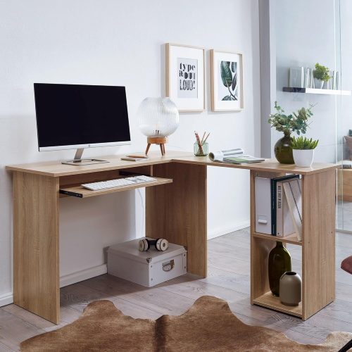 Meja Kerja Sudut Jati Model L Simple Minimalis