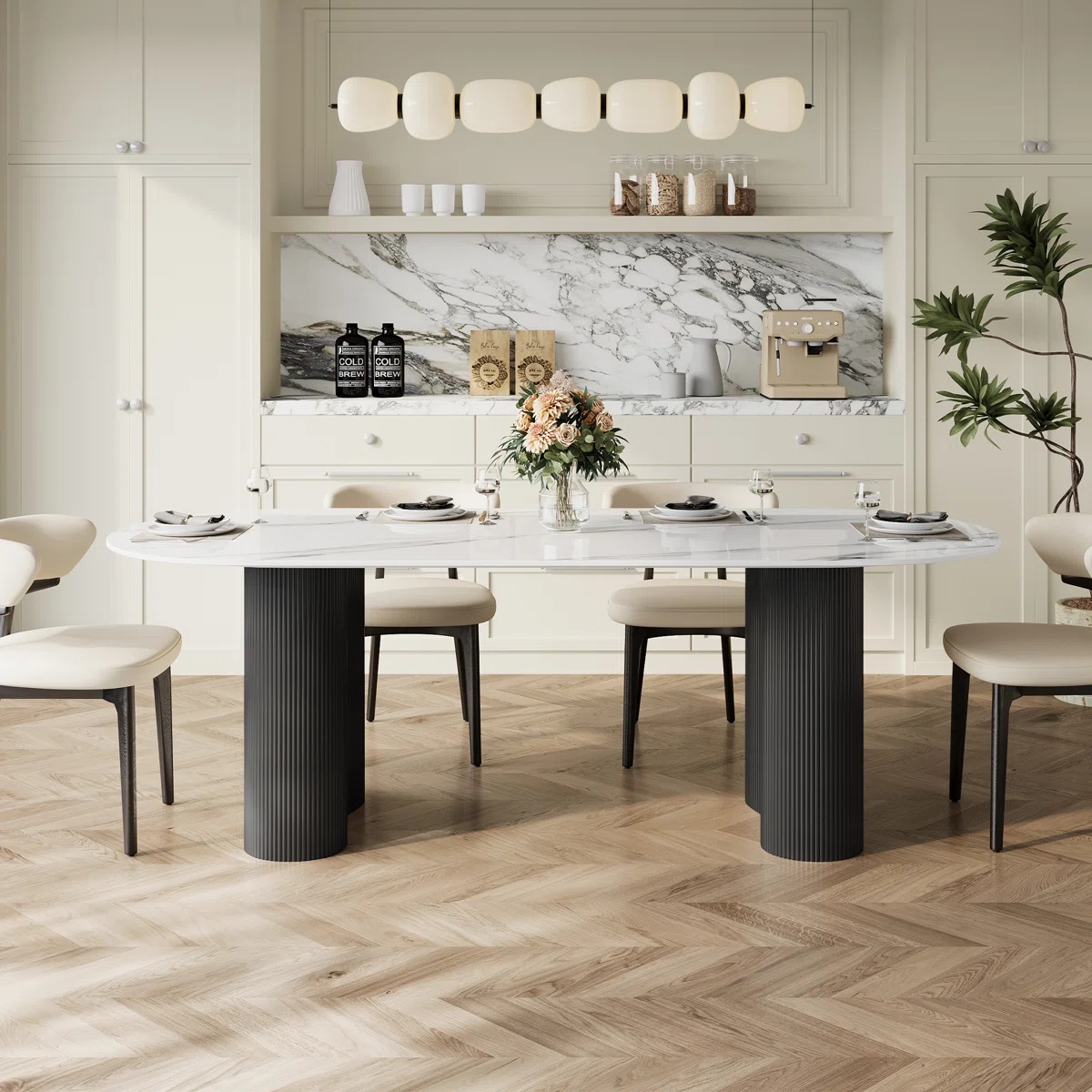 SPESIFIKASI Meja Makan Mewah Modern Kombinasi Marmer Terbaik Berkualitas